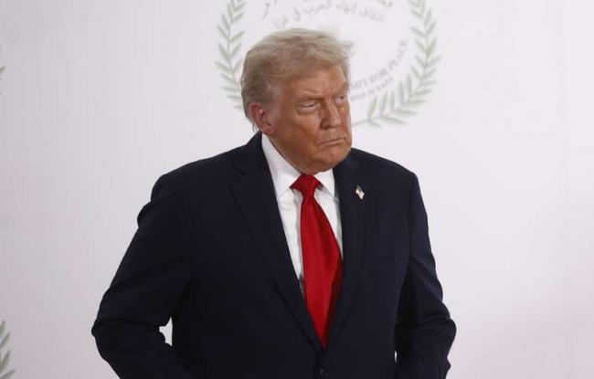 美國總統川普13日在埃及出席加薩國際和平峰會。 (美聯社)