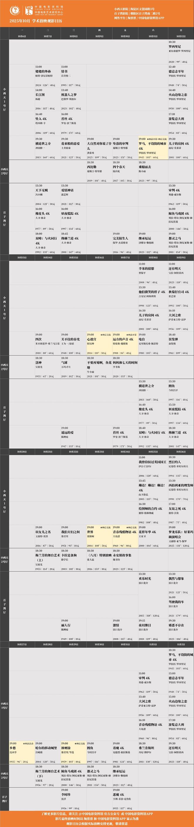 所有场次均可在淘票票、中国电影资料馆APP购票,具体排片见末图,祝大家观影愉快。??
