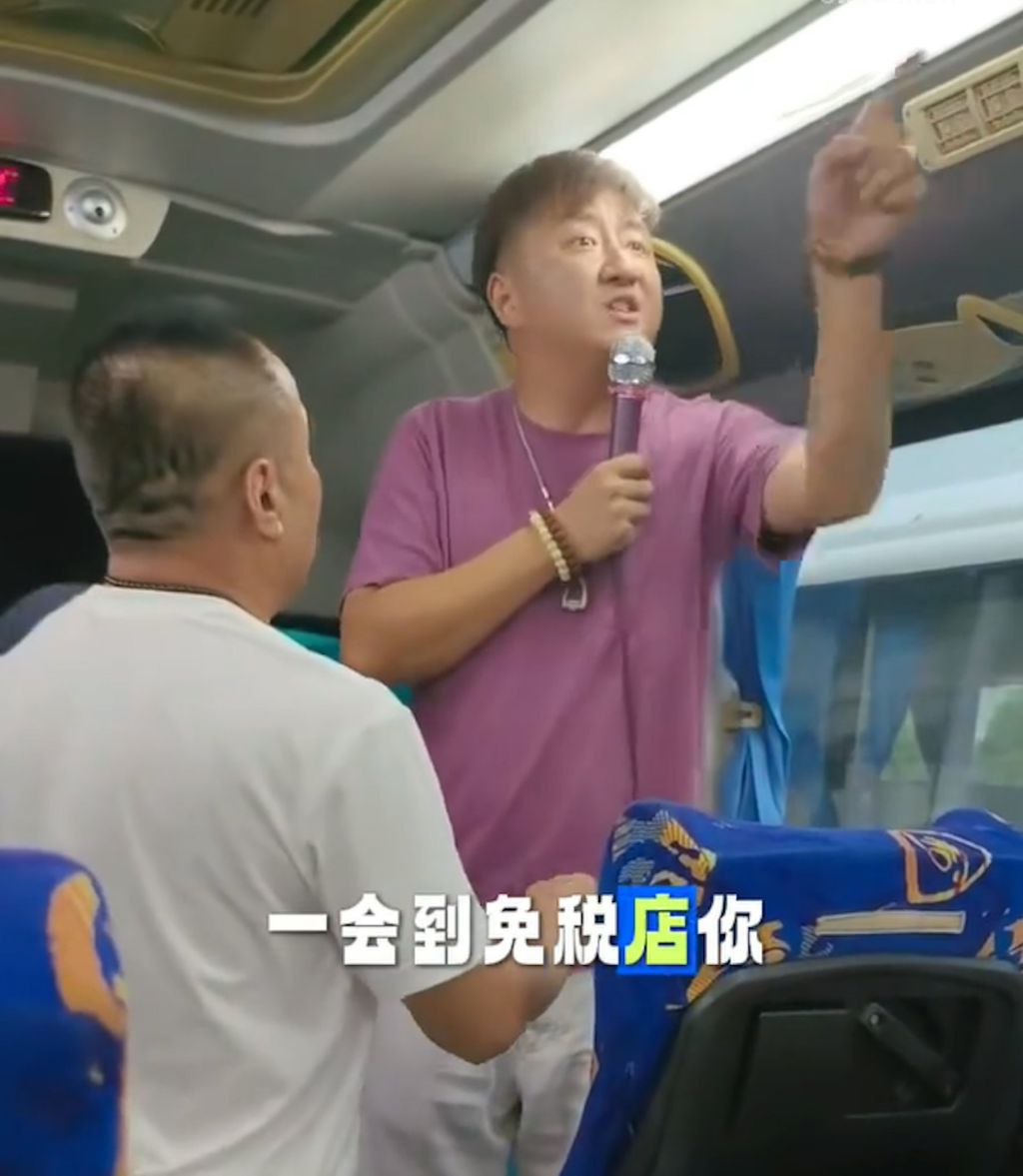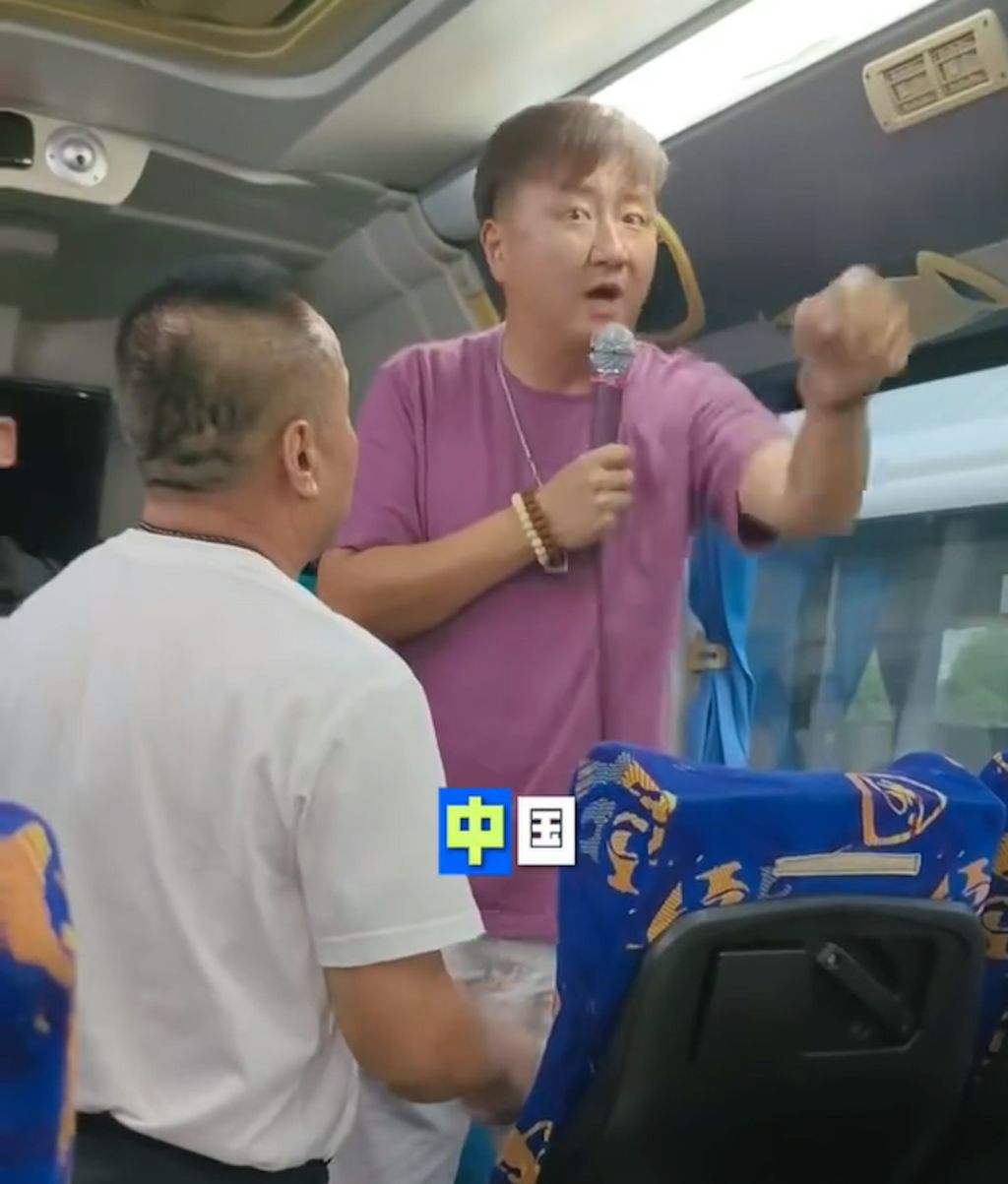 一名说普通话的导游在泰国的旅游巴上威胁游客。(影片截图)