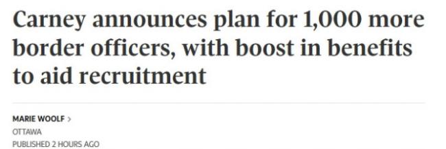 重磅:卡尼宣布招募1千名边境官,狂涨津贴