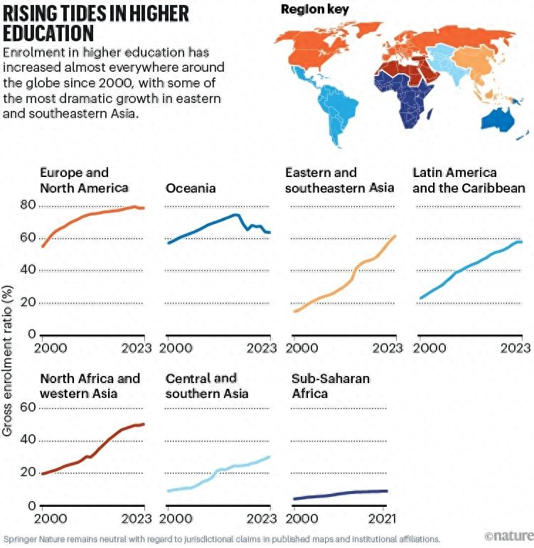 這些地區的毛入學率從2000年的61%增長到2024年的80%。