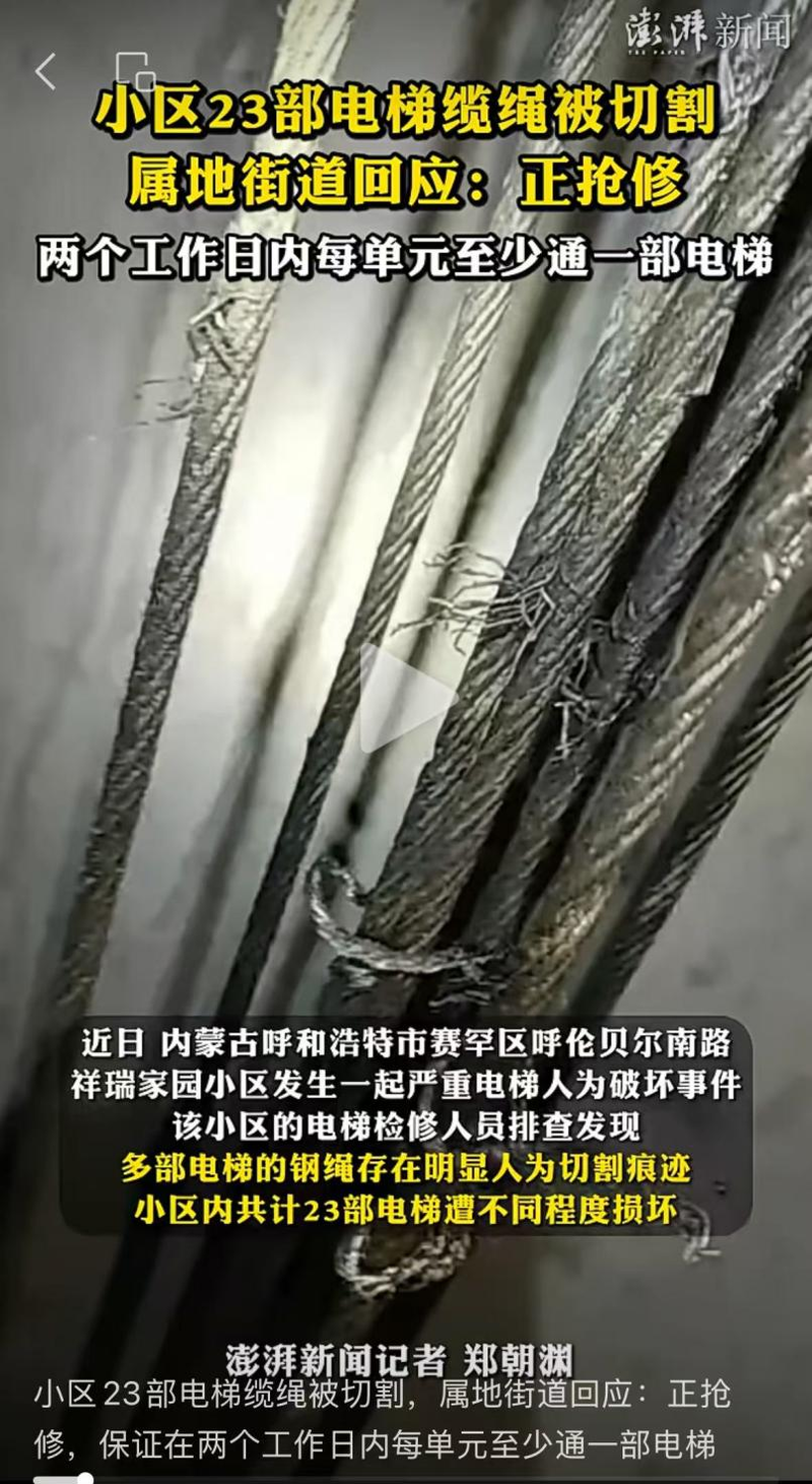 小区23部电梯"钢绳被割"事件 令人毛骨悚然