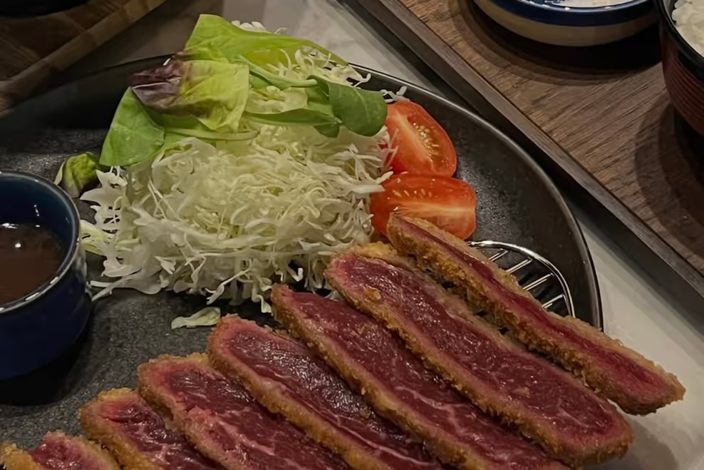 有网友已去品尝过,说很喜欢这里的味道 "那层金黄酥脆的外皮,包裹着粉嫩多汁的牛肉...第一口咬下去瞬间让我回到了东京。还品尝了炸物套餐——四款炸物同盘(猪里脊、猪排、虾仁与虎虾天妇罗),分量十足又赏心悦目。炸豆腐沙拉更是惊喜——酥脆豆腐搭配秘制酱油汁,完美融合所有风味。清爽脆嫩的口感,在饱尝炸物之后格外提神醒脑"。