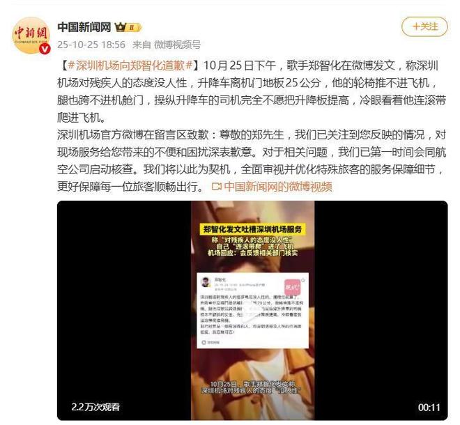 一则“连滚带爬”的控诉,让台湾残疾歌手郑智化和深圳机场一起被推上热搜,而随后流出的监控视频,更让这场争议彻底炸开了锅。