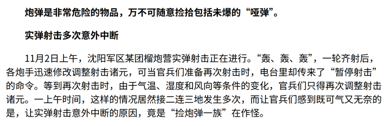 而且,即使這些群眾是在射擊完全結束,部隊已經撤走的情況下才進入訓練場,也是有很大問題的。因為在撿炮彈皮的過程中,很容易就會遇到未爆彈。