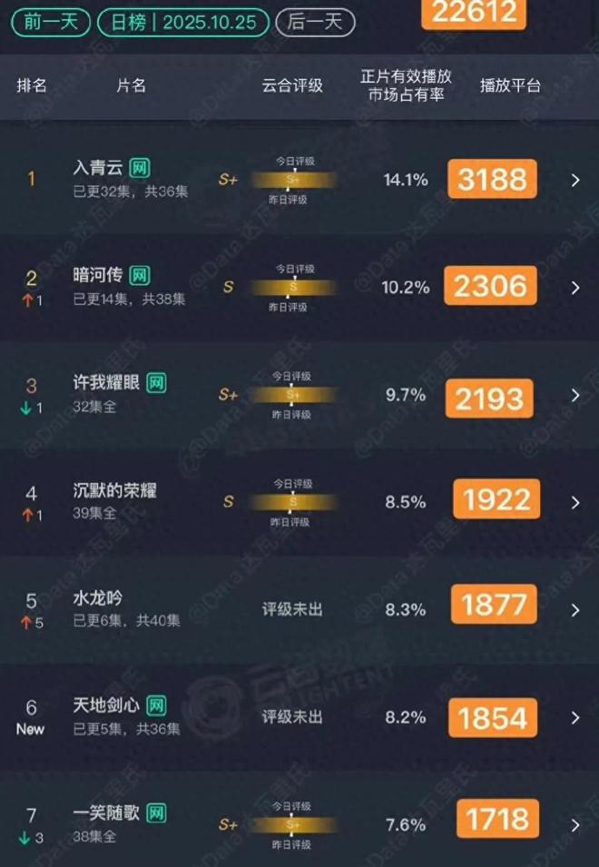 哪怕后期还有《暗河传》、《水龙吟》、《天地剑心》相继播出,造成了一些分流,但这部剧的热度也没有陡然下降,反而在稳步上升。云合市占率更是突破了14%,在播放尾声阶段实现登顶。