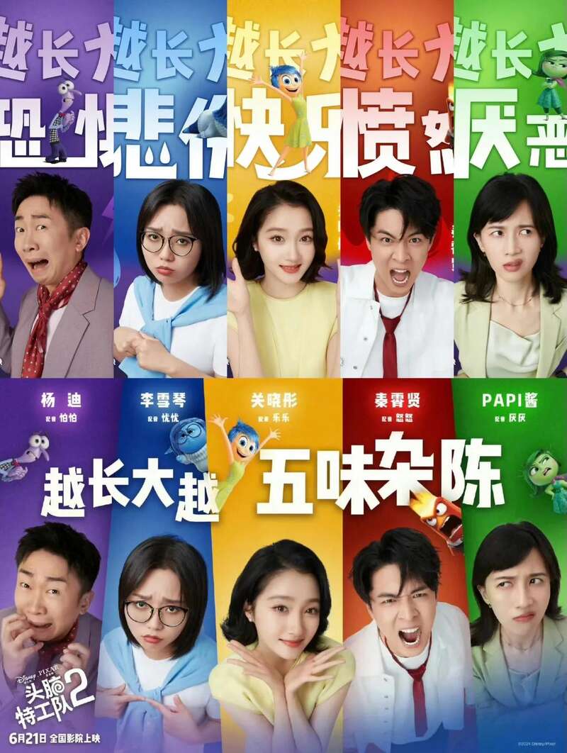 《头脑特工队2》的就比较杂,像关晓彤、李雪琴、秦霄贤、杨迪和Papi酱等,