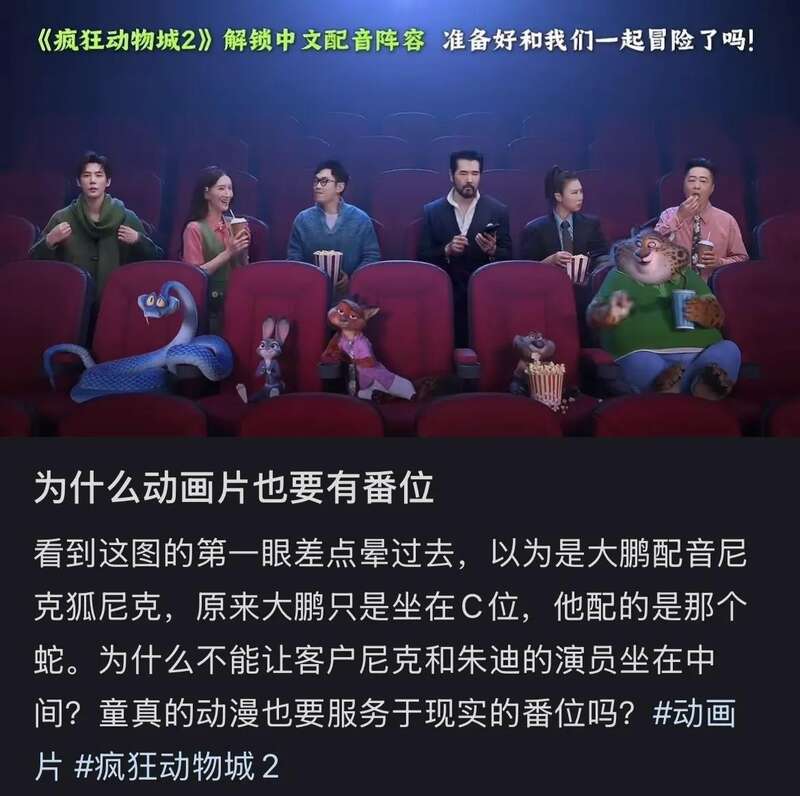 但除了季冠霖和张震,其他配音,依然由明星一个萝卜一个坑的占走,像费翔、大鹏、金晨、王安宇,熟悉的“明星大礼包”。