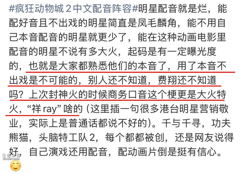 很多人喜欢动画电影用专业的配音演员,是因为他们的声音属于角色,而大多数演员的声音只属于他们自己,太有辨识度,达不到声音塑造角色的程度。