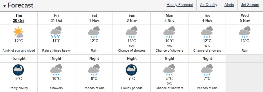 萬聖節及周末天氣展望