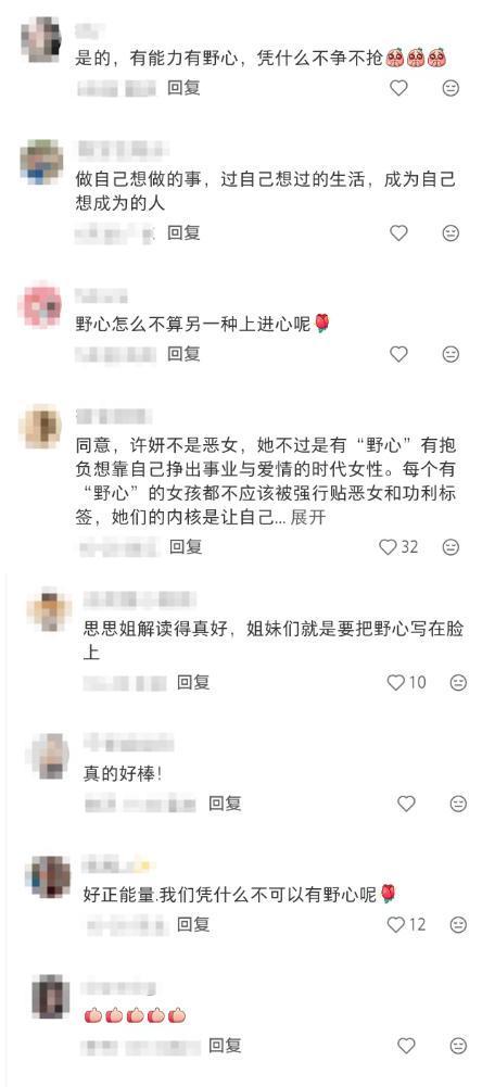 如果没有野心,如果没有欲望,我们许妍这个角色也不会有这么多的强烈的个人魅力,如此多的人喜欢。
