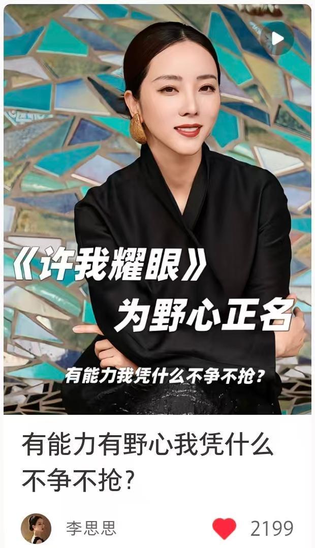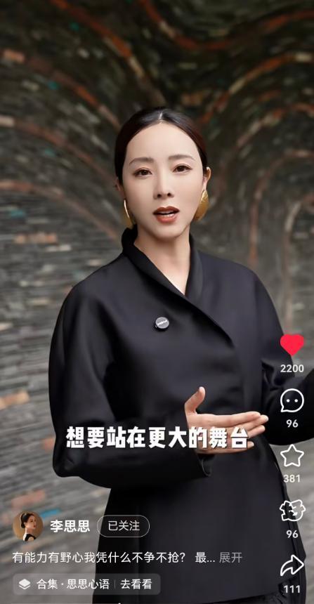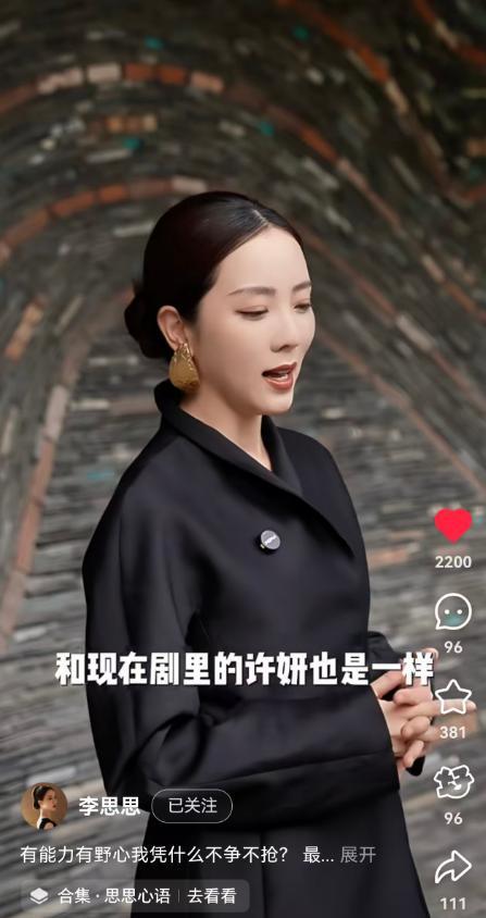 近日,知名主持人李思思在个人社交媒体账号上发布了一则小视频,视频里,李思思一袭黑衣,精致干练,她讲述了自己对热播剧《许你耀眼》中,女主角的一句台词的看法。