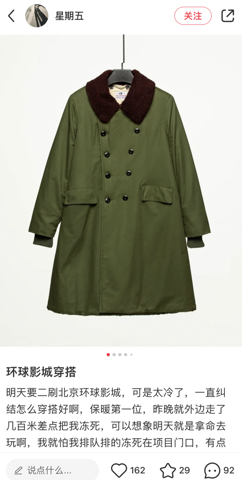 ▲10月中旬,来北京游玩已经开始要考虑好保暖事项了 图片来源:小红书@星期五