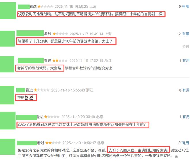 主角自带光环武力值超群,爱情戏占比过重挤压谍战主题,演员的表演套路化,方方面面都在观众的差评中沦陷。