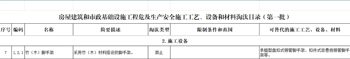 经观察者网查阅,2021年12月,住房和城乡建设部关于发布《房屋建筑和市政基础设施工程危及生产安全施工工艺、设备和材料淘汰目录(第一批)》的公告,为防范化解重大事故隐患,禁止在房屋建筑和市政基础设施工程中使用竹(木)脚手架。