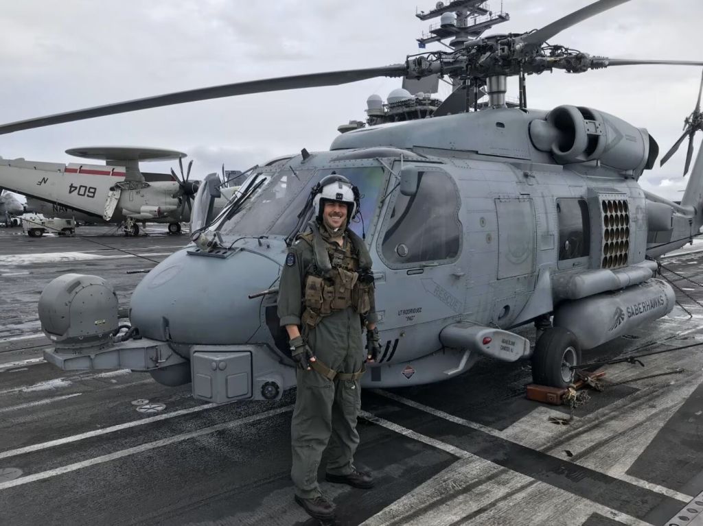 2020 年 Zach Rodriguez 少校在直升机旁的照片,太平洋巡役开启了他的加密货币学习之路。