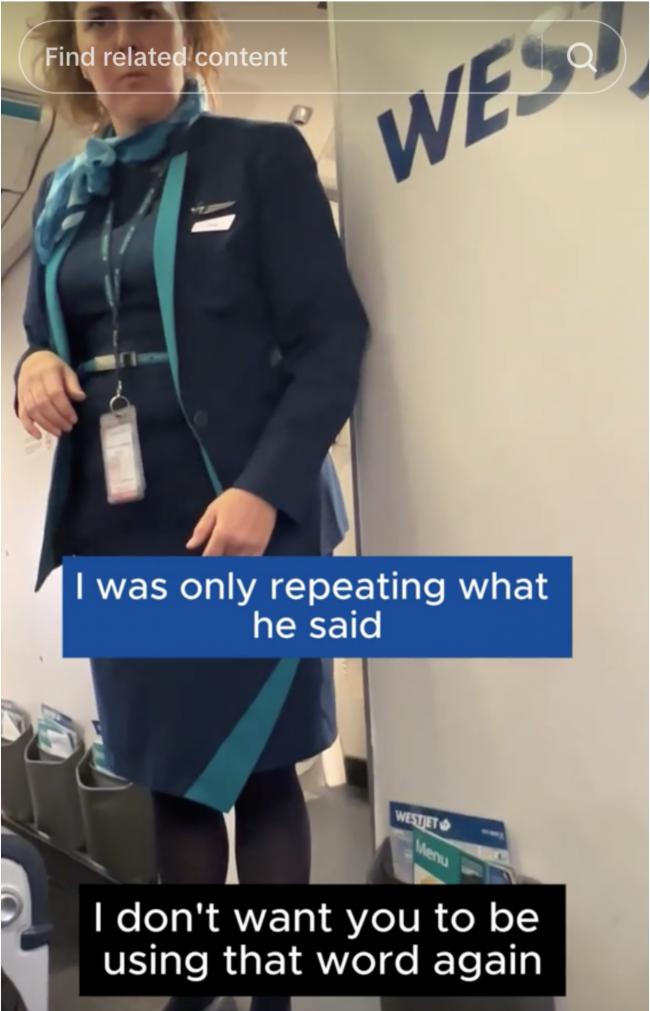 最离谱的是,这里这名空乘所说的“词汇”实际上就是那名乘客对 Chung 说的话,而 Chung 只是复述给她听。