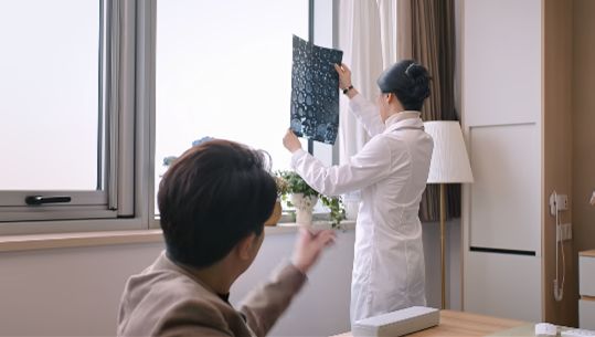 这个改编让国产版比日韩版的肚子疼多了一层反差喜剧感。可这个女主未免有点跨学科,又做肛肠科手术,又看脑部CT,男主什么病都能找她看。