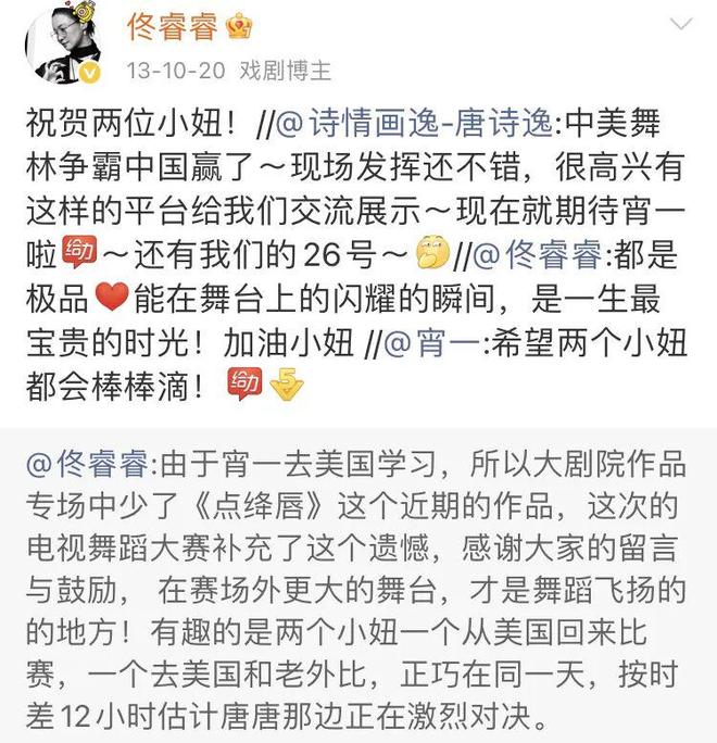 兩個人在大型舞蹈史詩《水月洛神》裡擔任過女壹號甄宓的AB角。又因起點相似:學生時代都拿下過舞蹈領域含金量最高的國家級權威賽事雙冠,壹時之間難分伯仲。