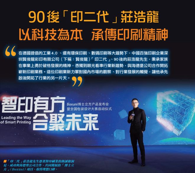 莊浩龍長大後,家族給他專門成立了壹個深圳賢俊龍彩印有限公司,也屬中國百強,所以莊浩龍也被稱為“印贰代”。