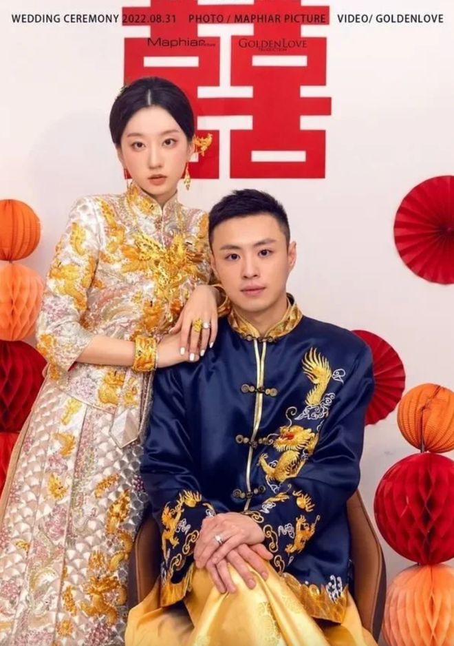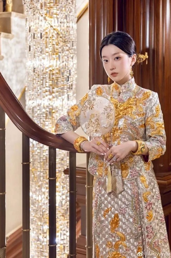 華宵壹穿的這身衣服來源於麒麟東方藝術設計,創始人就是剛剛在黎星楊洋合照上的新娘子李昆。