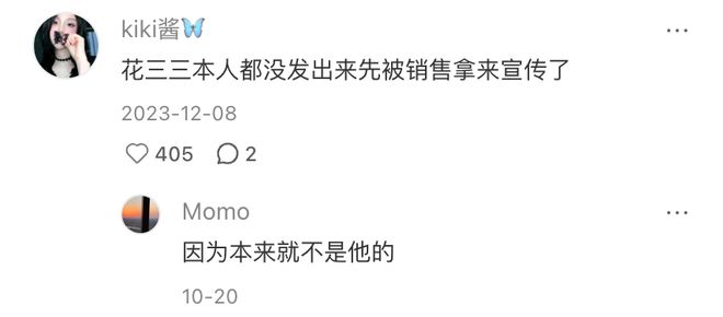 正因為花叁叁有錢,所以大家對於晚的諷刺又格外猛烈。
