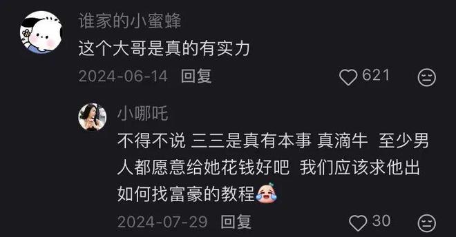 花叁叁壹路走來,顏值高,有話題,能出片,又成功地約到“大哥”,所以民間有很多女孩是她的追隨者,她們希望能像花叁叁壹樣“靠臉吃飯”,說白了就是想走捷徑。
