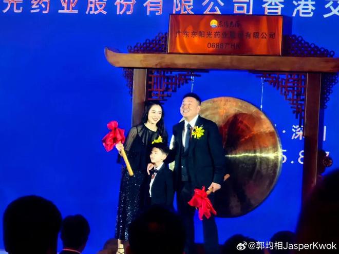 張寓帥攜妻兒,壹家叁口共同出現在敲鍾儀式現場。