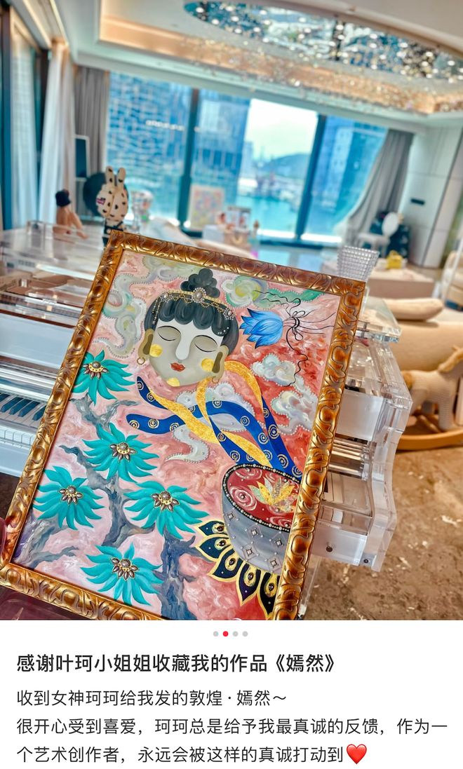 另外說壹句,凡是成功牽手大哥的網紅,都會時不時流露出壹些玄學符號,比如葉珂還曬過下面這張畫,也被各大網紅拿去當作招桃花的吉祥物。