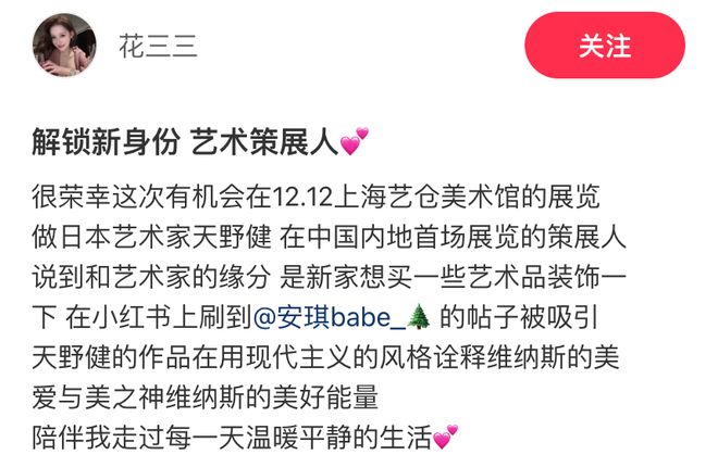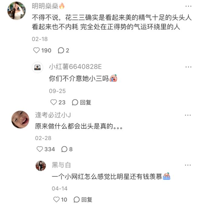 另壹邊,花叁叁的事業發展得也不錯,從小紅書的粉絲量來看,華宵壹才10多萬,而花叁叁已經42萬了。