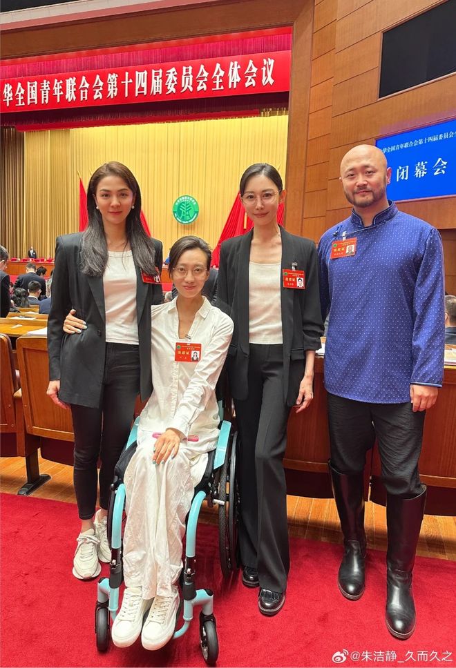 網友口中常說的“南朱北唐”,指的是朱潔靜和唐詩逸。這張照片中間是劉岩(2008年奧運會上高台跌落致殘的舞蹈家),右邊是李德戈景(蒙古族舞蹈家,2014年他在《中國好舞蹈》上表演的烏拉特民族舞蹈《鴻雁》驚艷全場,被郭富城盛贊為 “舞仙”)。