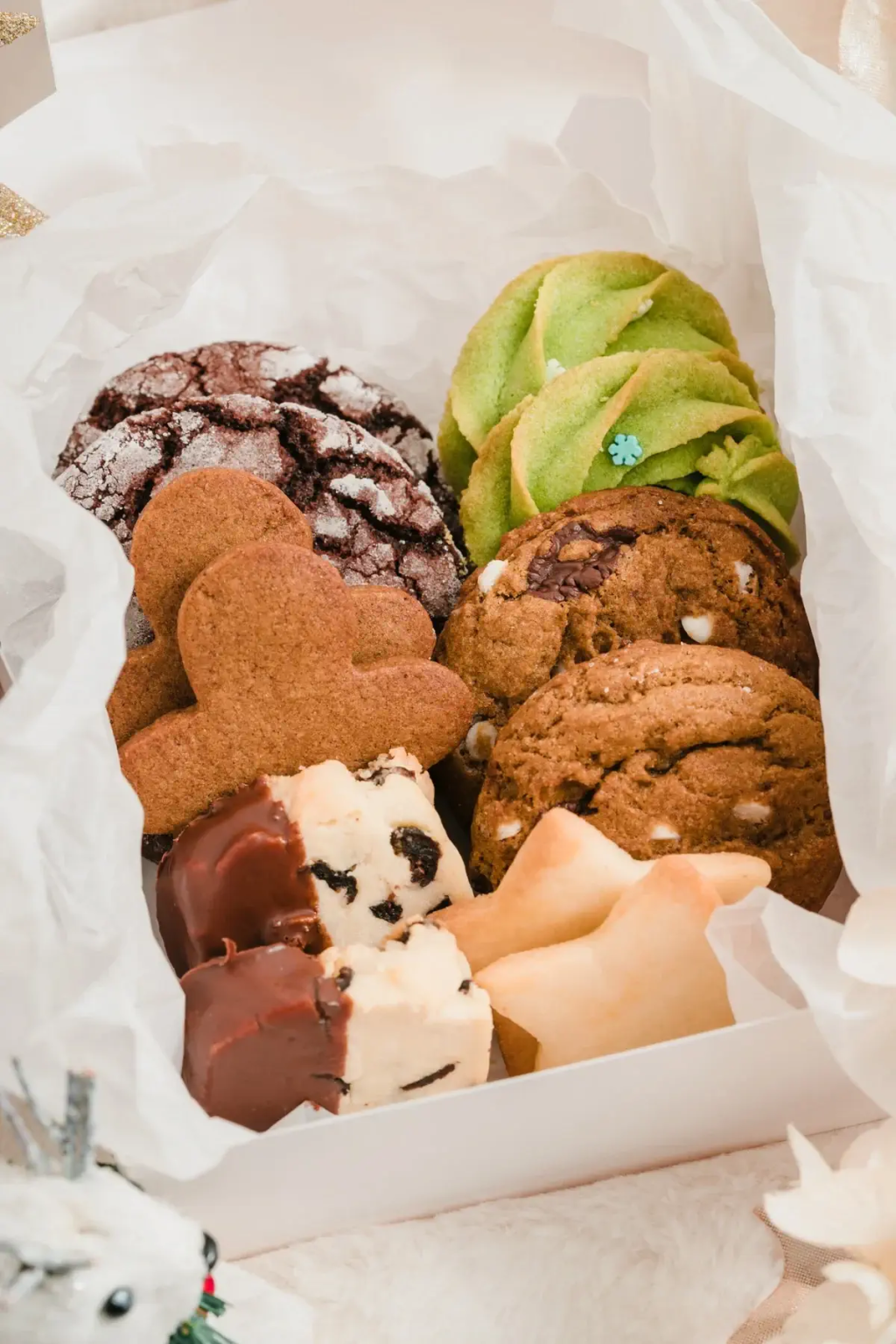 這家甜點店證明了,制作美味的節日糕點並不需要黃油或雞蛋。他們推出了壹款節日餅幹套裝,只需 25 元就能解決 "我帶什麼去參加派對" 的難題。盒子裡裝有 12 塊餅幹,口味包括巧克力裂紋餅幹、南瓜香料拿鐵餅幹與抹茶丹麥餅幹等,甜香肆溢。