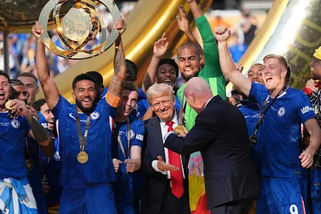 而最令人哭笑不得是,原本最後世俱杯決賽的獎杯,作為頒獎嘉賓的特朗普,原本是需要將獎杯遞給冠軍切爾西的隊長裡斯·詹姆斯,誰知特朗普遞過獎杯後,自顧自的站在了領獎台的最C位。切爾西隊長詹姆斯愣了壹下,最終還是舉起獎杯,同特朗普壹同歡呼。