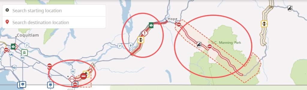 交通与运输厅表示,包括工程顾问在内的一个团队已完成对该公路的实地评估,确认本周“大气河流”天气导致希望镇(Hope)至曼宁公园(Manning Park)路段出现的“严重破坏”。