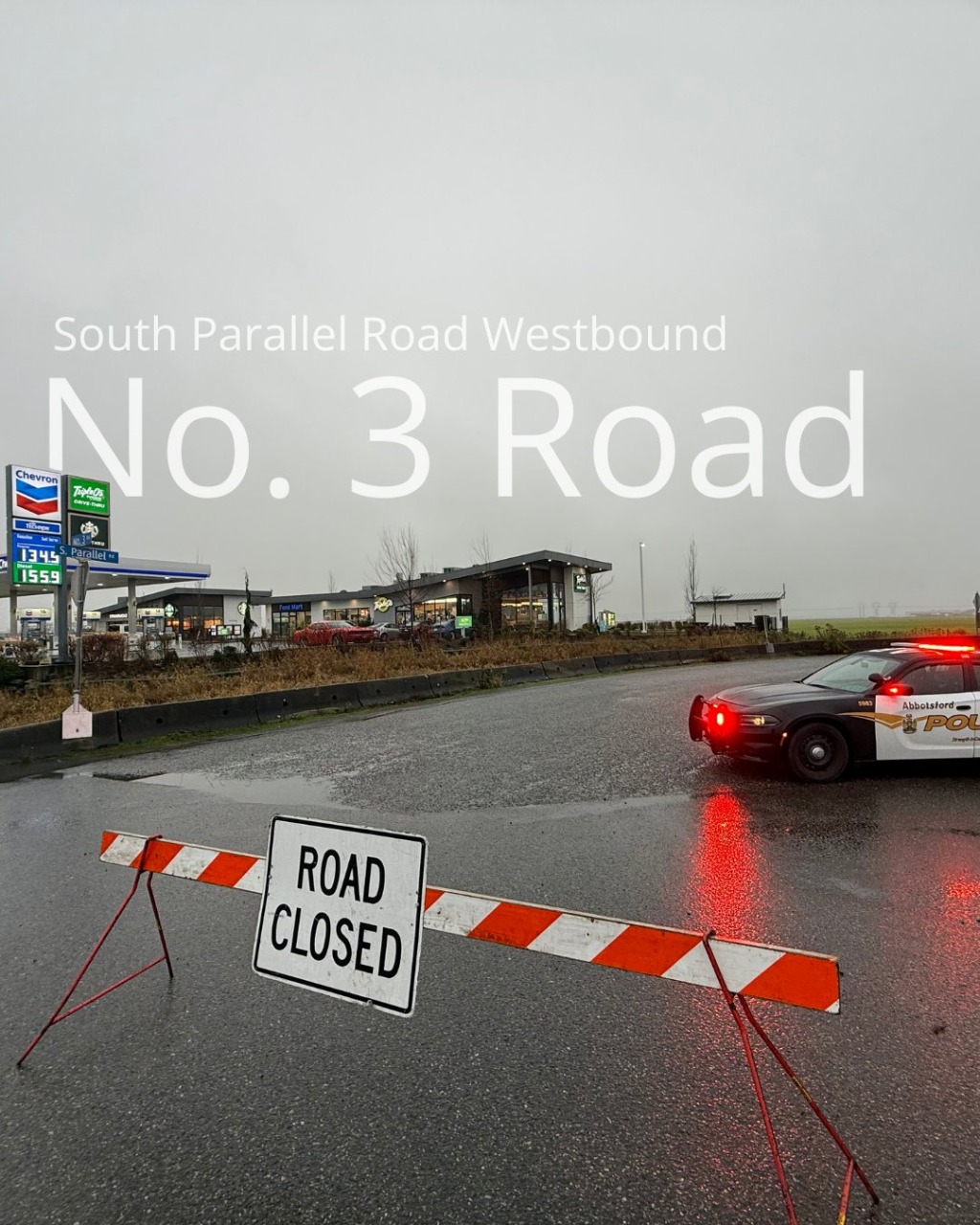 阿伯茨福德警方发言人保罗·沃克(Sgt. Paul Walker)在周六早晨发布的社交媒体视频中提醒市民,切勿擅自上路,应遵守道路封闭规定。