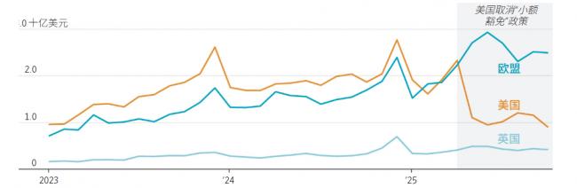 根据中国海关的数据,欧盟今年已首次超过美国,成为中国价值1,000亿美元小额包裹发货的最大市场。