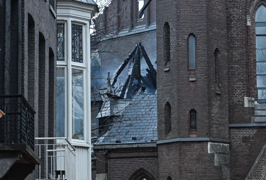 阿姆斯特丹市中心的新哥特式冯德尔教堂也在新年夜的一场大火中被摧毁。阿姆斯特丹警方和消防部门表示,他们正在调查教堂起火原因,这座教堂建于1872年。