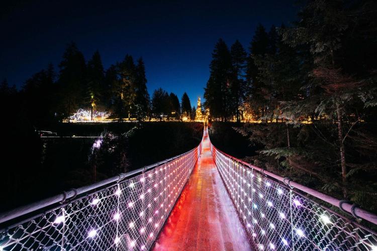 位于北温的卡普兰奴吊桥公园(Capilano Suspension Bridge Park)平日即为森林浴赏景好去处,前一档以圣诞新年为主题的“峡谷灯光秀”即将于1月18日结束,但很快将于1月30日迎来浪漫的“爱之光”(Love Lights)。
