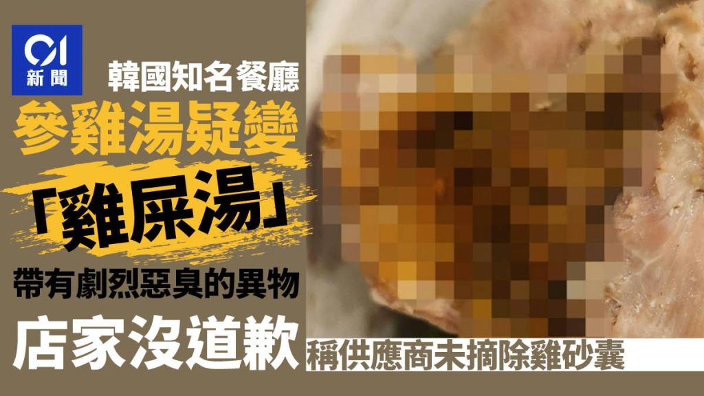 韩国仁川松岛一家以参鸡汤闻名的排队餐厅,近日陷入食安风暴。一名网友在网路社群爆料,指称12月23日晚间前往该店用餐时,在鸡肉内部发现了带有剧烈恶臭的异物,气得他以「我在知名参鸡汤店吃到了鸡屎」为标题发文控诉。