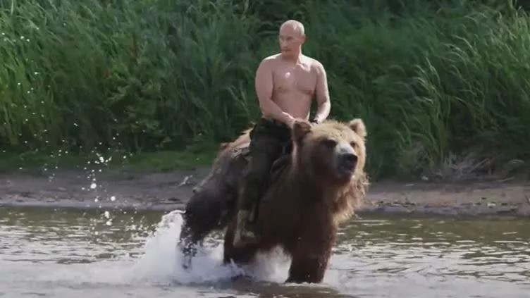 俄羅斯總統普京騎熊的梗圖在網絡上瘋傳多年。(圖/《Miguel Deitos》YouTube)