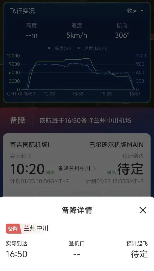下午5時許,記者注意到,根據航旅縱橫APP顯示,該航班於16時50分備降蘭州中川國際機場。記者致電蘭州機場公安和蘭州機場急救中心,工作人員均表示,此事以官方消息為准。