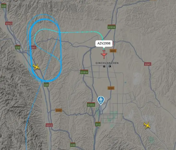 根據飛常准顯示,該客機大約在北京時間23日下午2點半後高度有所下降,並在空中盤旋。極目新聞記者注意到,該客機飛到蘭州附近上空,並盤旋了多圈。