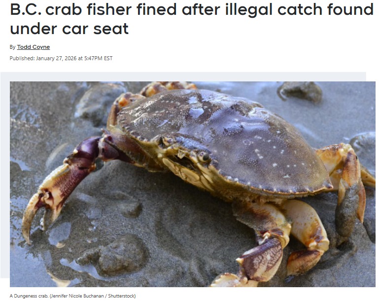(加西網綜合)BC省壹名法官近日裁定,壹名居民因非法捕撈並藏匿螃蟹,被判處罰款3000加元。