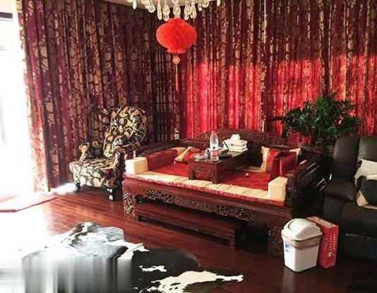欧式的大吊灯下面却挂个中式灯笼,中式罗汉床旁边却铺了欧式地毯,这是要把乱搭进行到底吗?