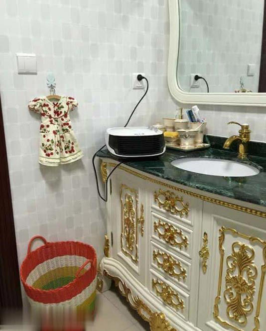 卫生间,欧式的洗手台,还带金边,亮瞎眼啊