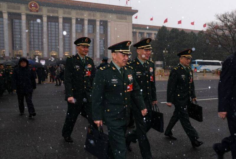 图为3月4日出席中国“两会”的军方代表。 (路透)