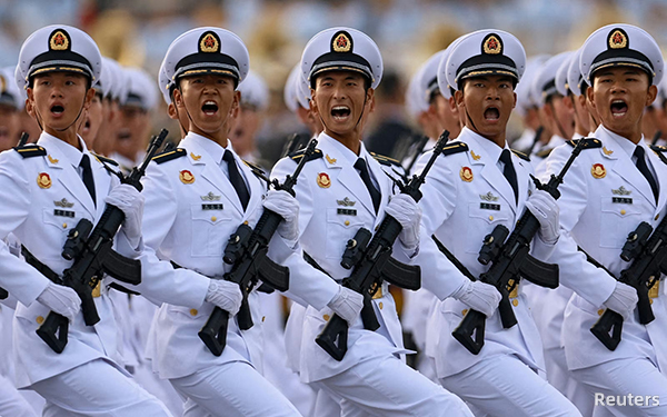 阅兵式上的解放军士兵(2025年9月,北京,Reuters)
