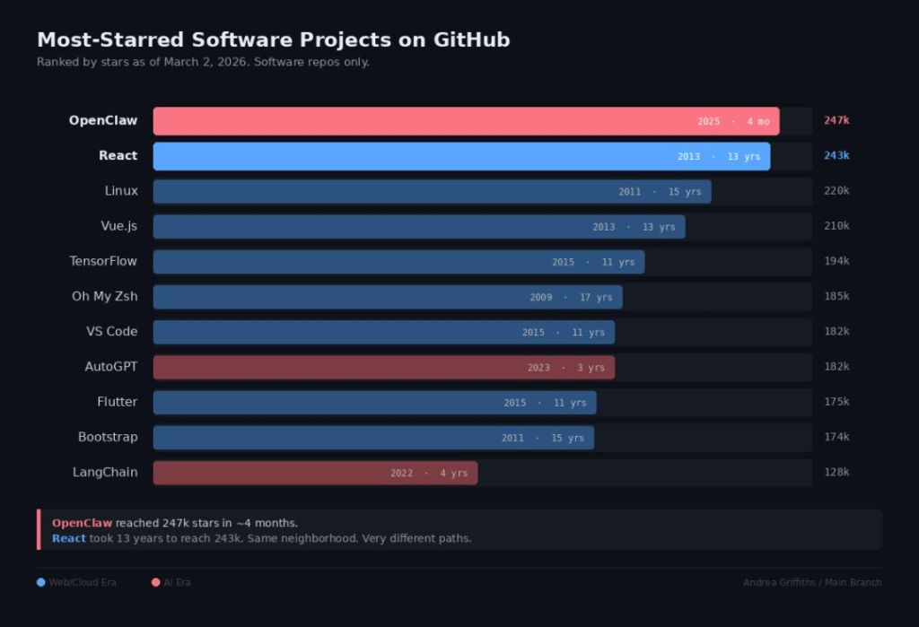OpenClaw達到同樣的高度,只用了100天。