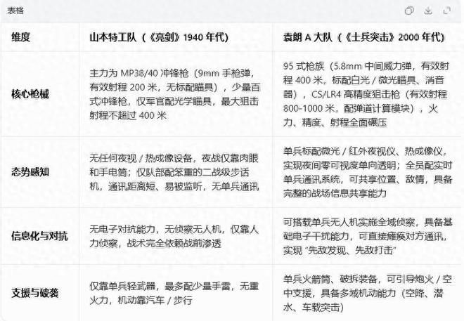 单兵能力方面,双方应该处于持平状态,A大队的特种兵都是单兵战斗力极强的存在,连许三多都一个一招秒掉一个女毒贩,更何况是袁朗,当时,袁朗一个过肩摔就把许三多给放倒了,而山本特工队一开始也有段剧情是他们徒手杀掉三个手持短刀的战俘的桥段,也能说明这群士兵的战斗力不差,这方面,双方应该都是平手的。