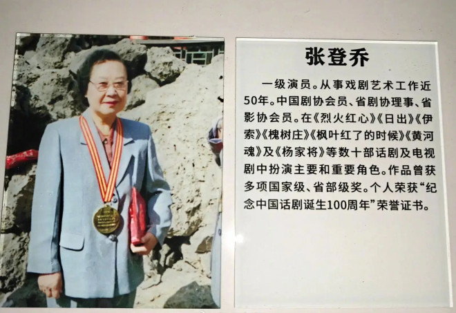 在省话剧院,记者在楼梯间看到,有不少张登乔此前参演作品的照片,包括1957年的《桃花扇》、1959年的《伊索》等,其个人履历上写有,张登乔,一级演员,从事戏剧艺术工作近50年,中国剧协会员、省剧协理事、省影协会员,在《烈火红心》《日出》《伊索》《槐树庄》《枫叶红了的时候》《黄河魂》及《杨家将》等数十部话剧及电视剧中扮演主要和重要角色。作品曾获多项国家级、省部级奖。个人荣获“纪念中国话剧诞生100周年”荣誉证书。